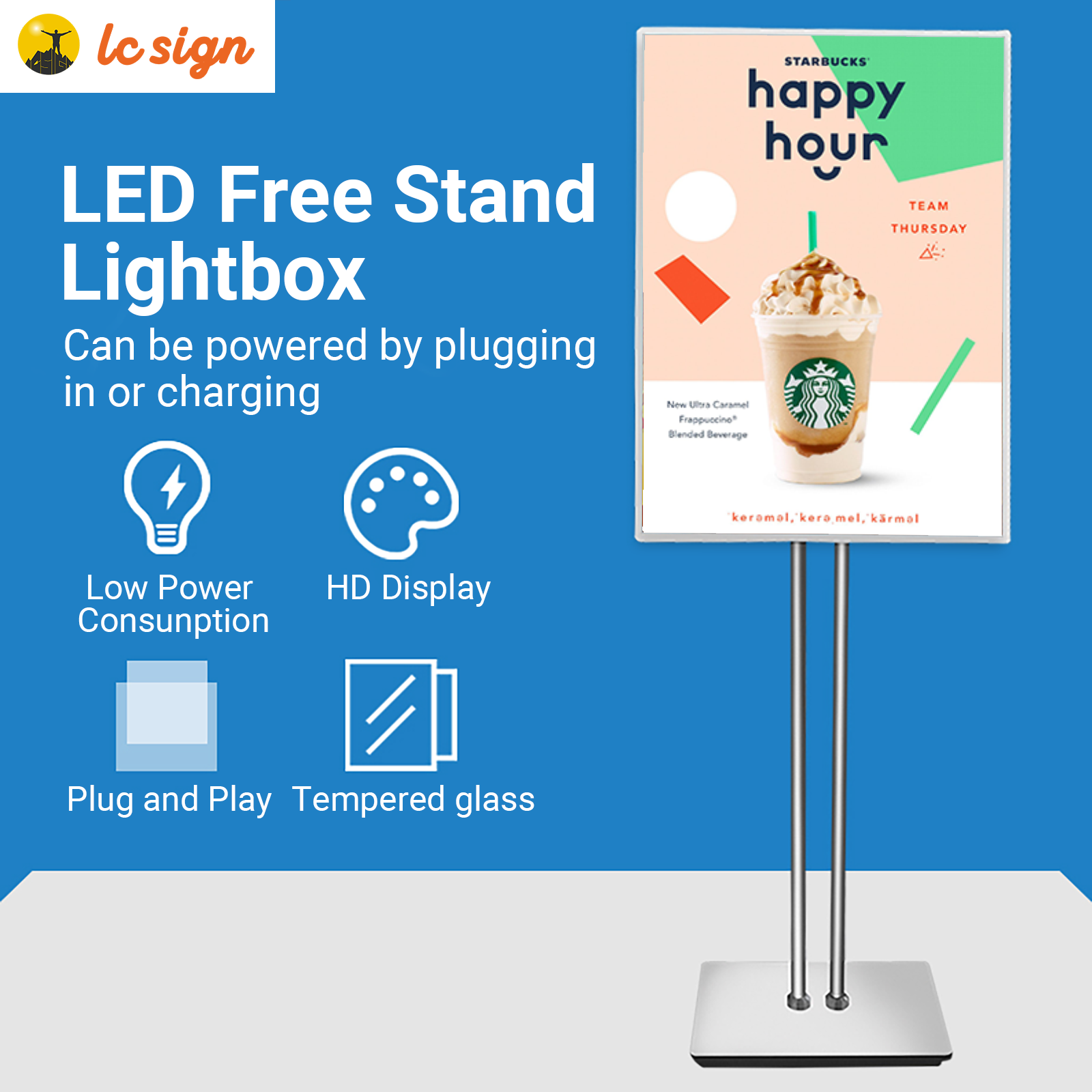 Indoor Use Only – Floor-standing Display Vertical Poster Advertising Light Box Sign with Double Poles for Shops